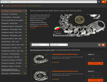 - Verkauf von Panzerketten, Königsketten, Schlangenketten, Ankerketten und Armbänder in massiv 925 Sterling Silber